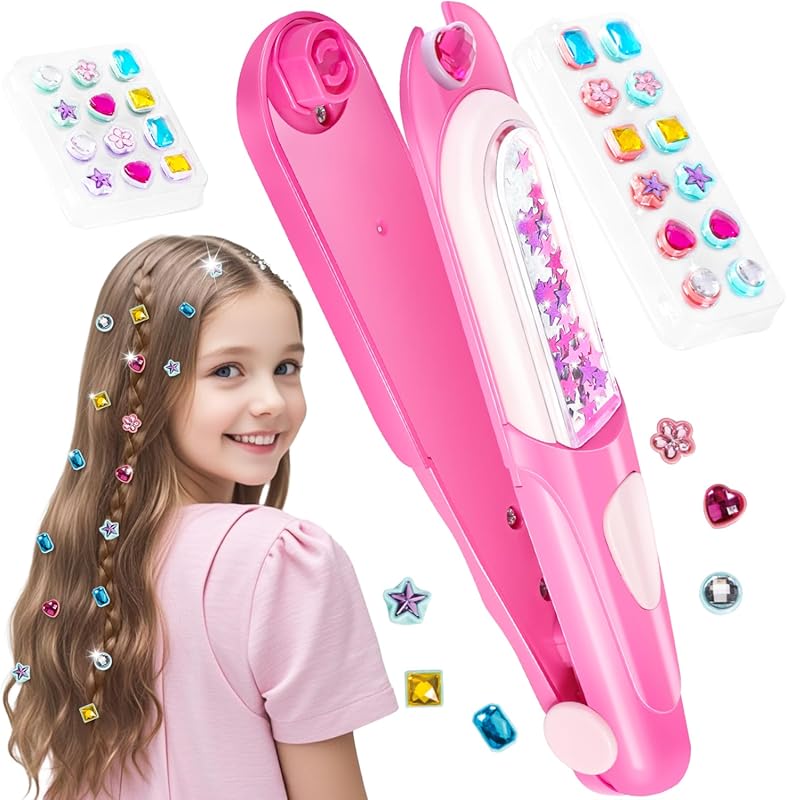 This hair gem stamper kit lets girls add instant sparkle to their look. My niece tested this for a week, and the reusable diamonds stayed put through school days and sleepovers. The tool works like a stamp—press it on, and the jewel adheres securely.
