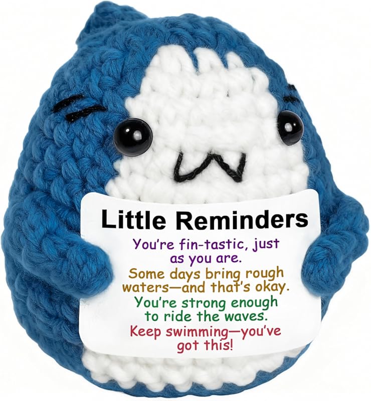 1. Positive Animals Crochet Shark Gift – Emotional Comfort Shark Plush with Support Message