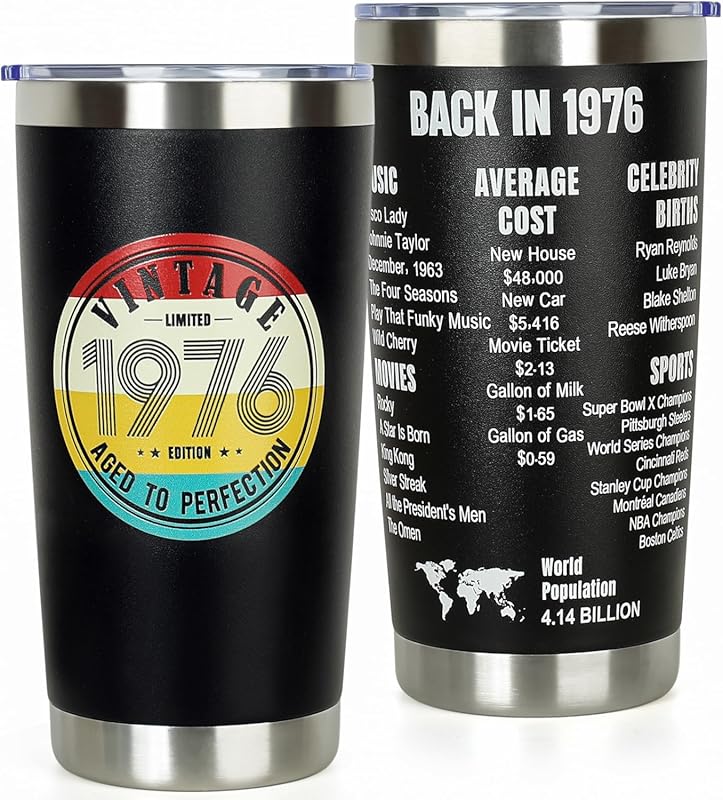 We love how this tumbler bridges sentimentality with everyday utility. Unlike typical novelty gifts that collect dust, he’ll reach for this regularly. The vintage 1976 graphics aren’t just decorative—they’re conversation starters that honor his birth year with authentic historical details. The quality construction means it won’t break or wear out quickly, making it a gift that lasts well beyond the birthday celebration.